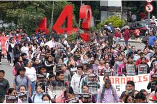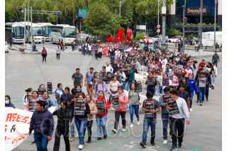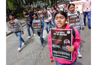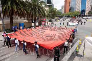 CIUDAD DE MEXICO, 15JUNIO2025.- Estudiantes de la Escuela Normal Rural de Mactumactzá, Chiapas, sostienen parcartas en las que se lee " Eduardo Ramirez asesino". Los estudiantes marcharon del Ángel de la Independencia rumbo al Zócalo capitalino para exigir a las autoridades justicia por la muerte de Jesús Alain Vásquez, quien perdió la vida al caer de una camioneta durante una persecución policial el pasado 15 de mayo en el Estado de Chiapas. FOTO: MAGDALENA MONTIEL/CUARTOSCURO.COM