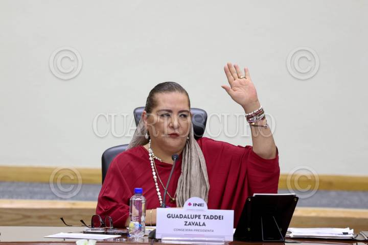 CIUDAD DE MÉXICO, 15JUNIO2025.- Guadalupe Taddei Zavala durante la sesión en donde se dieron a conocer varios casos de candidatos hombres ganadores en la elección Poder Judicial y que cuentan con señalamientos de ser deudores o violentadores de género, esto durante la sesión extraordinaria del INE. FOTO: MOISÉS PABLO/CUARTOSCURO.COM