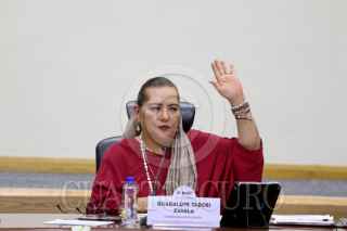 CIUDAD DE MÉXICO, 15JUNIO2025.- Arturo Castillo Loza, Uuc-Kib Espadas, y Guadalupe Taddei Zavala, durante la sesión en donde se dieron a conocer varios casos de candidatos hombres ganadores en la elección Poder Judicial y que cuentan con señalamientos de ser deudores o violentadores de género, además de diversas irregularidades en la menos 800 casillas que serán anuladas en el correo final. FOTO: MOISÉS PABLO/CUARTOSCURO.COM