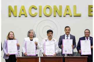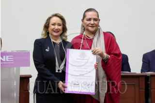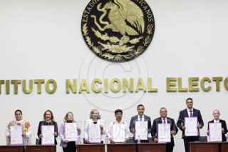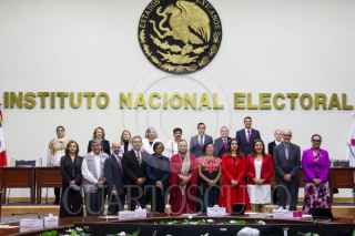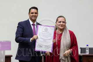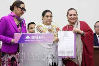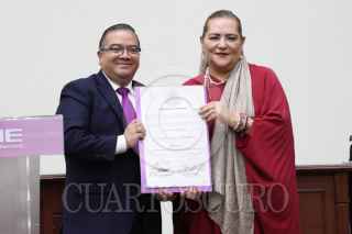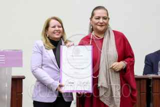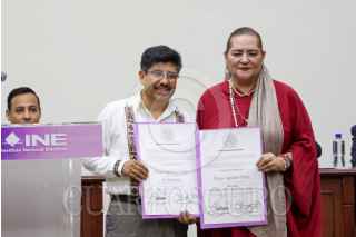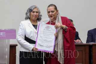 CIUDAD DE MÉXICO, 15JUNIO2025.- Yasmín Esquivel Mossa recibió su constancia de ministra electa de la SCJN durante una sesión extraordinaria en el INE. El documento le fue entregado por la consejera electa Guadalupe Taddei Zavala. FOTO: MOISÉS PABLO/CUARTOSCURO.COM