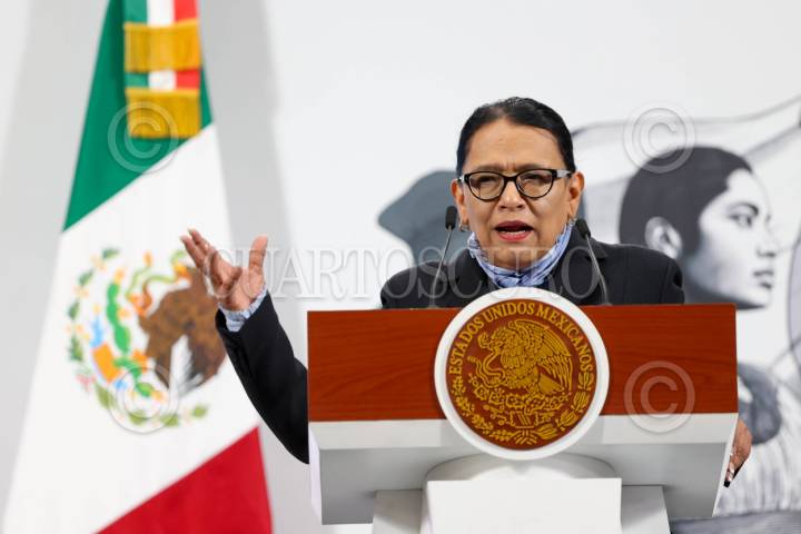 CIUDAD DE MÉXICO, 16JUNIO2025.- Rosa Icela Rodríguez, secretaria de Gobernación, encabezó la Mañanera del Pueblo. Ahí informó que la presidenta de México se encuentra en la reunión del G7, que se está realizando en Canadá. También dio a conocer los avances del Programa Nacional de Vivienda. FOTO: MOISÉS PABLO/CUARTOSCURO.COM