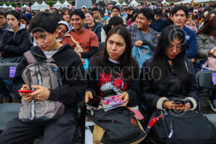 CIUDAD DE MÉXICO. 16JUNIO2025.- Jóvenes universitarios de la Ciudad de México esperan para la recepción de apoyo para el transporte. FOTO: VICTORIA VALTIERRA/CUARTOSCURO.COM
