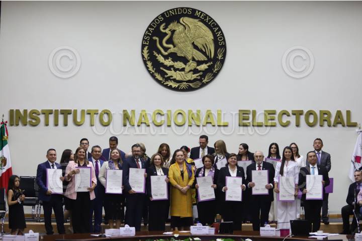 CIUDAD DE MÉXICO, 16JUNIO2025.- Guadalupe Taddei, consejera presidenta del INE, se toma una fotografía con los candidatos ganadores del Tribunal de Disciplina Judicial, Tribunal Electoral del Poder Judicial de la Federación y de tribunales regionales del TEPJF. FOTO: DANIEL AUGUSTO/ CUARTOSCURO.COM