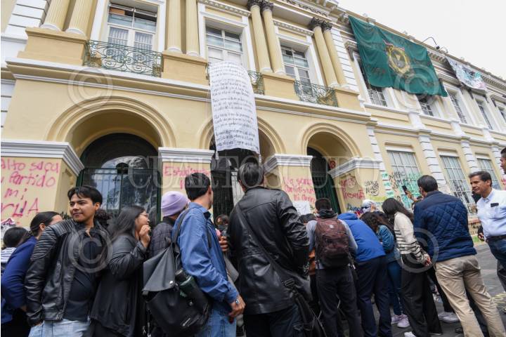 TOLUCA, ESTADO DE MÉXICO, 16JUNIO2025.- Integrantes del Enjambre Estudiantil Unificado entregaron la Declaración de Principios del EEU así como una Propuesta de Reforma al Estatuto Universitario a Isidro Rogel Fajardo, encargado del Despacho de la Oficina de Rectoría de la UAEMÉX e integrantes de la Comisión Especial para el Diálogo del H. Consejo Universitario, en la Casa del Estudiante antes Rectoría. Se anunció también la realización de una mesa de diálogo el próximo 17 de junio. FOTO: CRISANTA ESPINOSA AGUILAR /CUARTOSCURO.COM
