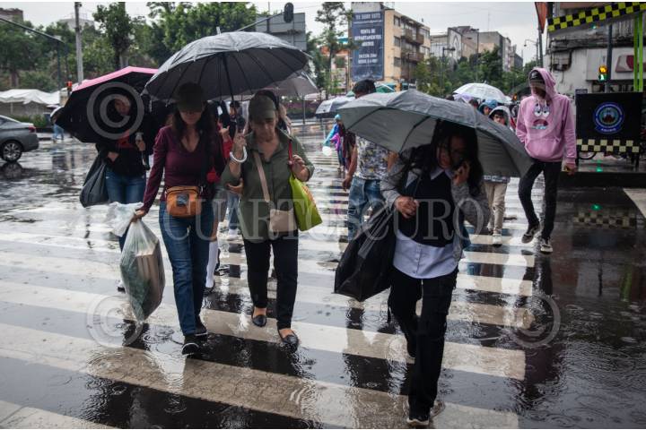 CIUDAD DE MÉXICO, 16JUNIO2025.- Capitalinos sacan sus paragüas e impermeables para resguardarse de la lluvia en el primer cuadrante del Centro Histórico. FOTO: ANDREA MURCIA /CUARTOSCURO.COM