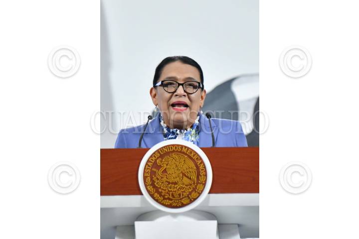 CIUDAD DE MÉXICO, 17JUNIO2025.- Rosa Icela Rodríguez, secretaria de Gobernación, durante su intervención en la conferencia matutina donde indicó las actividades realizadas por Claudia Sheinbaum, presidenta de México, en la Cumbre G7 con sede en Canadá. FOTO: MARIO JASSO/CUARTOSCURO.COM