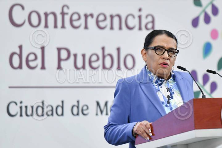 CIUDAD DE MÉXICO, 17JUNIO2025.- Rosa Icela Rodríguez, secretaria de Gobernación, durante la conferencia matutina realizada en Palacio Nacional. La secretaria indicó las actividades realizadas por Claudia Sheinbaum, presidenta de México, en la Cumbre G7 con sede en Canadá; y reiteró que en el Gobierno del país se respetan las garantías individuales, entre ellas la libertad de expresión. FOTO: MARIO JASSO/CUARTOSCURO.COM