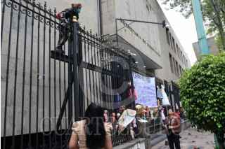 CIUDAD DE MÉXICO, 17JUNIO2025.- Irene, madre de Holy Yash, dialoga con funcionarias de Segob, quiénes intentan que se retire de la puerta de Gobernación. FOTO: DANIEL AUGUSTO/ CUARTOSCURO.COM