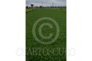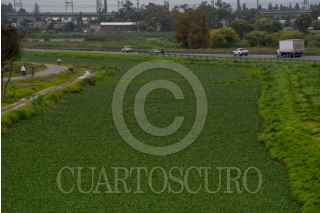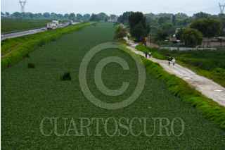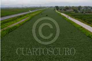 SAN MATEO ATENCO, ESTADO DE MÉXICO, 17JUNIO2025.- Aspectos de lirio acuático en el Río Lerma, en el tramo que pasa por el municipio de San Mateo Atenco. CRISANTA ESPINOSA AGUILAR/CUARTOSCURO.COM