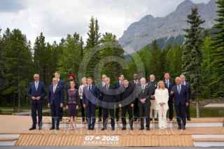 ALBERTA, CANADÁ, 17JUNIO2025.- Claudia Sheinbaum Pardo, presidenta de México, se tomó la foto oficial con los líderes de la Cumbre G7, entre los que se observan a Emmanuel Macron, presidente de Francia; Volodímir Zelenski, presidente de Ucrania, y Luiz Inácio Lula da Silva, presidente de Brasil. FOTO: PRESIDENCIA/CUARTOSCURO.COM