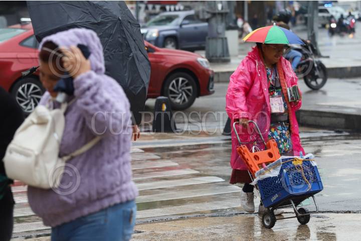 CIUDAD DE MÉXICO, 17JUNIO2025.- Las personas buscan protegerse de la lluvia con paraguas e impermeables. FOTO: DANIEL AUGUSTO/ CUARTOSCURO.COM