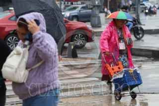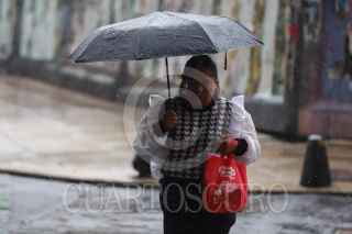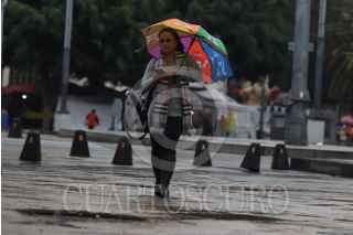 CIUDAD DE MÉXICO, 17JUNIO2025.- Una persona camina utilizando un paraguas para protegerse de la lluvia que cayó este medio día en la capital. FOTO: DANIEL AUGUSTO/ CUARTOSCURO.COM