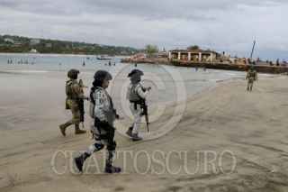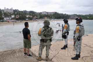 SAN PEDRO MIXTEPEC, OAXACA, 17JUNIO2025.- Elementos de la Guardia Nacional realizaron un recorrido por la playa principal en Puerto Escondido ante el avance de la tormenta tropical Erick que de acuerdo a los pronósticos afectará las costas de Oaxaca. FOTO: CAROLINA JIMÉNEZ MARISCAL/CUARTOSCURO.COM