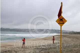 SANTA MARÍA COLOYEPEC, OAXACA, 18JUNIO2025.- Algunas personas pasean por la zona de la Playa Zicatela a pesar de haberse decretado que el sistema tropical Erick evolucionó a huracán categoría 1 en la escala Saffir - Simpson frente a las costas de Oaxaca. FOTO: CAROLINA JIMÉNEZ MARISCAL/CUARTOSCURO.COM