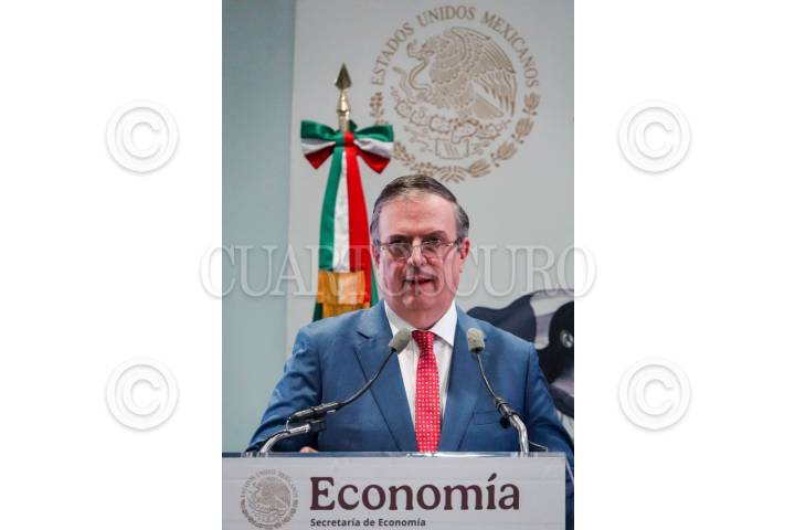 CIUDAD DE MÉXICO, 18JUNIO2025.- Marcelo Ebrard Casaubón, secretario de Economía, durante la firma del Convenio de colaboración del Comité Educativo de Minería México 2025 en las inmediaciones de la Secretaría de Economía. Con el objetivo de impulsar la vinculación entre el sector educativo y la industria minera del país. FOTO: GALO CAÑAS/CUARTOSCURO.COM