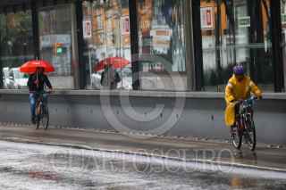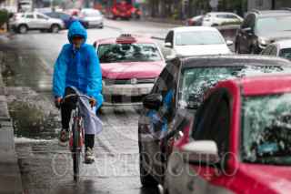 CIUDAD DE MÉXICO, 19JUNIO2025.- Durante la mañana se registró una ligera lluvia en la capital, relacionada con los efectos del huracán Erick en las costas de Oaxaca. En la alcaldía Cuauhtémoc, algunas personas salieron con impermeables al usar la bicicleta. FOTO: MOISÉS PABLO / CUARTOSCURO.COM