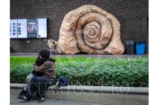 CIUDAD DE MÉXICO, 19JUNIO2025.- Pareja se abraza durante espera para función en la Cineteca Nacional. FOTO: ANDREA MURCIA /CUARTOSCURO.COM