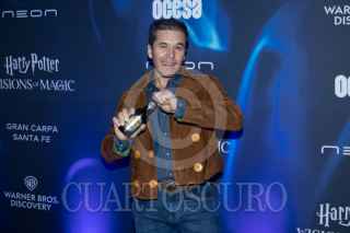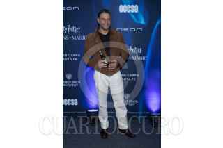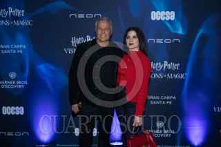CIUDAD DE MÉXICO, 19JUNIO2025.- Alexis Ayala y Cinthia Aparicio a su paso por la alfombra azul de la experiencia inmersiva "Harry Potter, Visions of Magic", en la Carpa Santa Fe. FOTO: EDGAR NEGRETE LIRA/CUARTOSCURO.COM