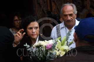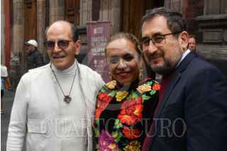 CIUDAD DE MÉXICO, 20JUNIO2025.- César Cravioto, secretario de gobierno de la capital,; Alejandra Frausto, secretaria de Turismo de la capital, y el padre Alejandro Solalinde, durante su llegada al Museo de la Ciudad de México, en donde se realizará un homenaje privado a Ximena Gúzman, y José Muñoz, a un mes de su asesinato ocurrido sobre la avenida Tlalpan. FOTO: MARIO JASSO/CUARTOSCURO.COM