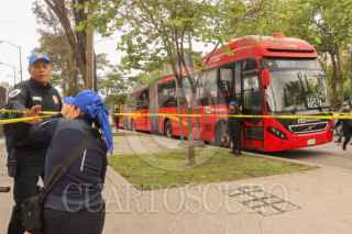 CIUDAD DE MÉXICO, 20JUNIO2025.- Murió un hombre de un infarto abordo del Metrobús, que corre sobre Insurgentes, a la altura de Eje 1 Norte. Personal de transporte público intento reanimarlo sin lograrlo, personal de la fiscalía trasladado el cuerpo al anfiteatro. FOTO: ROGELIO MORALES/CUARTOSCURO.COM
