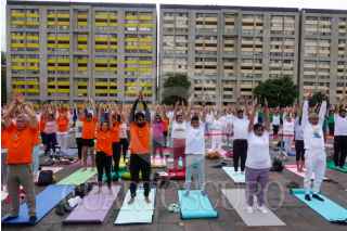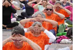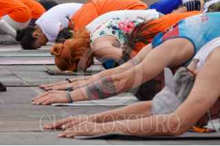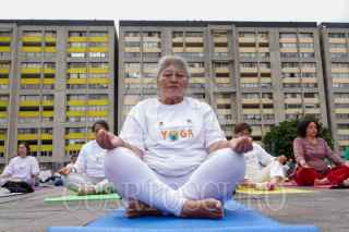 CIUDAD DE MEXICO, 21JUNIO2025.- Como parte de las actividades por el Día Internacional del Yoga, la Secretaría de Cultura de la CDMX, en colaboración con la embajada de la India en México y el Centro Cultural de la India Gurudev Tagore, realizaron una clase masiva de Yoga en la Plaza de las Tres Culturas, Tlatelolco. FOTO: MAGDALENA MONTIEL/CUARTOSCURO.COM