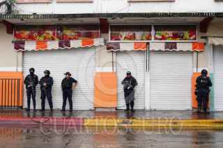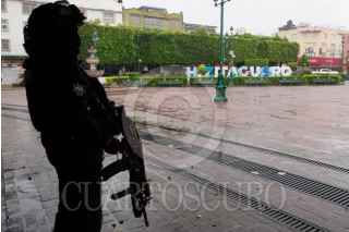 ZITACUARO, MICHOACÁN, 21JUNIO2025.- Al mediodía de este viernes, los negocios que habían retomado sus operaciones en Zitácuaro, volvieron a bajar sus cortinas ante posibles nuevos enfrentamientos. En la zona centro, la Guardia Civil y Seguridad Pública Municipal mantienen blindado el Ayuntamiento, lo cual había generado confianza entre los comerciantes para retomar sus actividades. Uno a uno, los locatarios bajaron las cortinas de sus negocios y la afluencia de personas también se vio disminuida, luego de que también volvió a suspenderse el transporte público. Presuntos integrantes del Cártel Jalisco Nueva Generación (CJNG) y Familia Michoacana (FM) protagonizaron este jueves una ola de violencia en el municipio. FOTO: JUAN JOSÉ ESTRADA SERAFÍN/CUARTOSCURO.COM