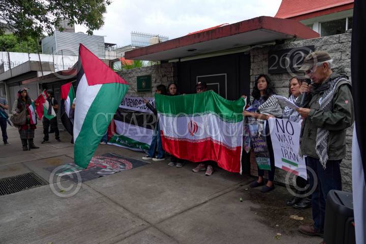 CIUDAD DE MÉXICO 21JUNIO2025.- Integrantes de diversos colectivos manifestaron su apoyo a el país de Palestina frente a su embajada en México. FOTO:ROGELIO MORALES /CUARTOSCURO.COM