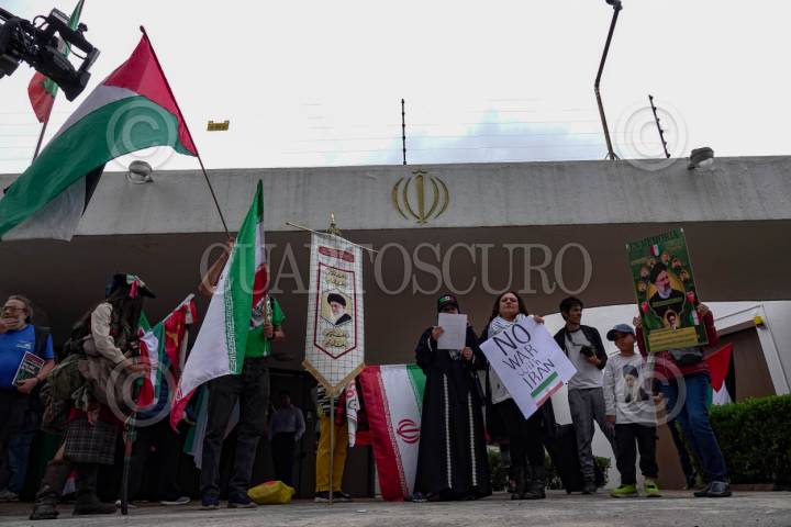 CIUDAD DE MÉXICO 21JUNIO2025.- Integrantes de diversos colectivos manifestaron su apoyo a el país de Irán frente a su embajada en México. FOTO:ROGELIO MORALES /CUARTOSCURO.COM