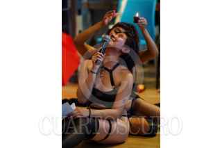 CIUDAD DE MÉXICO, 21JUNIO2025.- Puesta en escena del performance “La Poética del Sudor” durante el primer Festival Trabajo Sexual en Cualquier Lugar, organizado por el Memorial 1968 (M68), el Centro Cultural Universitario (CCU) de Tlatelolco y las organizaciones en defensa del respeto, dignificación y atención al trabajo sexual: CLaP!, RedTraSex, Red Umbrella Fund y Amets FOTO: GALO CAÑAS/CUARTOSCURO.COM