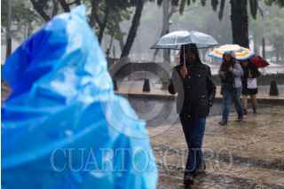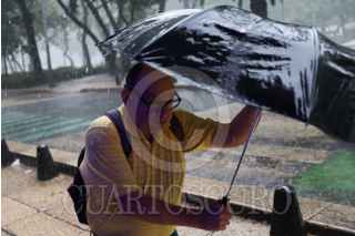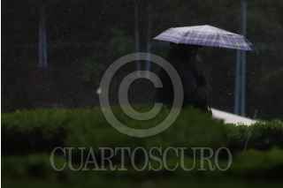 CIUDAD DE MÉXICO, 22JUNIO2025.- Una persona busca protegerse de la lluvia utilizando un paraguas. FOTO: DANIEL AUGUSTO/ CUARTOSCURO.COM