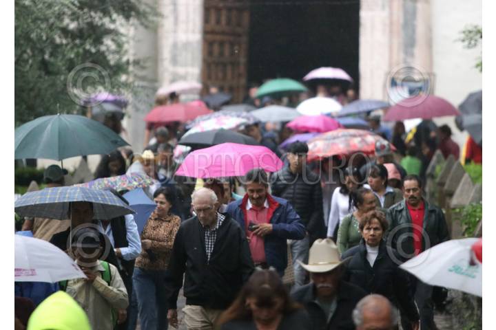 CUERNAVACA, MORELOS, 22JUNIO2025.- Escena cotidiana en el centro de la capital de Morelos, católicos salen a la lluvia del mediodía luego de asistir a la misa dominical en la Catedral. FOTO: MARGARITO PÉREZ RETANA/CUARTOSCURO.COM