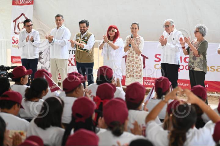 CAMPECHE, CAMPECHE, 22JUNIO2025.- Claudia Sheinbaum Pardo, Presidenta de México, encabezó el arranque del programa Salud Casa por Casa. La acompañaron Zoé Robledo, director del IMSS; Laysa Sansores, gobernadora de Campeche, y David Kershenobich, secretario de Salud Federal. FOTO: PRESIDENCIA/CUARTOSCURO.COM