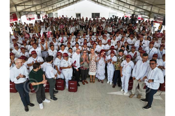 CAMPECHE, CAMPECHE, 22JUNIO2025.- Claudia Sheinbaum Pardo, Presidenta de México, encabezó el arranque del programa Salud Casa por Casa. La acompañaron Zoé Robledo, director del IMSS; Layda Sansores, gobernadora de Campeche, y David Kershenobich, secretario de Salud Federal. FOTO: PRESIDENCIA/CUARTOSCURO.COM
