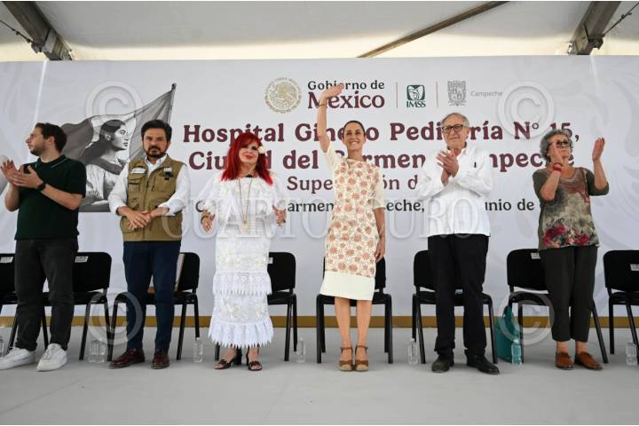 CIUDAD DEL CARMEN, CAMPECHE, 22JULIO2025.- Claudia Sheinbaum Pardo, Presidenta de México, encabezó la supervisión de la obra del Hospital Gineco Pediatría no. 15, como parte de su gira por el sureste del país. Zoé Robledo, director del IMSS; Layda Sansores, gobernadora de Campeche; y David Kershenobich Stalnikowitz, secretario de Salud de México. FOTO: PRESIDENCIA/CUARTOSCURO.COM