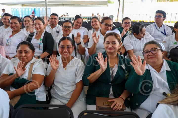 CIUDAD DEL CARMEN, CAMPECHE, 22JULIO2025.- Personal de salud durante la supervisión de la obra del Hospital Gineco Pediatría no. 15. FOTO: PRESIDENCIA/CUARTOSCURO.COM