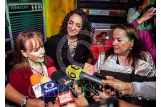 CIUDAD DE MÉXICO, 22JUNIO2025.- Fernanda Meade, Mayte Lascurain e Isabel Lascurain, integrantes de Pandora previo a función de Mentiras el Musical en el Teatro Aldama. FOTO: ANDREA MURCIA /CUARTOSCURO.COM