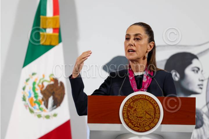 CIUDAD DE MÉXICO, 23JUNIO2025.- Claudia Sheinbaum Pardo, Presidenta de México, durante la mañanera del pueblo en Palacio Nacional. En la cual hablo sobre dos decreto en materia educativa, la primera es uno que permitirá que los maestros y maestras puedan moverse a centros educativos que mejor les convenga, el criterio para aplicar estemos cambios se tendrá en cuenta su antigüedad, así como, la reducción de la edad de jubilación. FOTO: MOISÉS PABLO/CUARTOSCURO.COM
