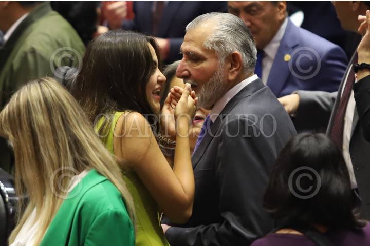 CIUDAD DE MÉXICO, 23JUNIO2025.- Los legisladores de Morena, Adán Augusto López y Andrea Chávez, dialogan durante la instalación del periodo extraordinario de sesiones. FOTO: DANIEL AUGUSTO/ CUARTOSCURO.COM