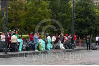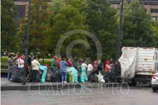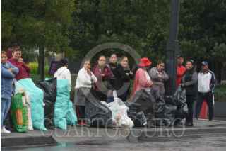 TOLUCA, ESTADO DE MÉXICO, 23JUNIO2025.- Un grupo de personas formadas sobre la avenida Independencia en Toluca esperan con bolsas de basura el camión recolector. FOTO: CRISANTA ESPINOSA AGUILAR /CUARTOSCURO.COM