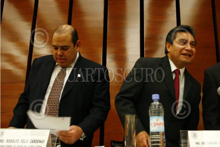 MEXICO, D.F. 07NOVIEMBRE2007. En el Tribunal Superior de Justicia se impartio el Foro de Justicia Alternativa, otra forma de impartirla. El magistrado Jose Guadalupe Carrera y Victor Hugo Cirigo, presidente de la mesa directiva de la Asamblea Legislativa. FOTO. PAOLA HIDALGO.CUARTOSCURO.COM