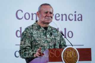 CIUDAD DE MÉXICO, 24JUNIO2025.- Arturo Coronel Flores, jefe del Estado Mayor de la Defensa Nacional, hizo uso de la palabra para explicar sobre los tipos de licencia que existe en las Fuerzas Armadas respecto a la propuesta de Ley por la que un integrante de las Fuerzas Armadas ocupe un cargo público, durante a conferencia matutina “Mañanera del Pueblo” en materia de Seguridad en Palacio Nacional. FOTO: GALO CAÑAS/CUARTOSCURO.COM
