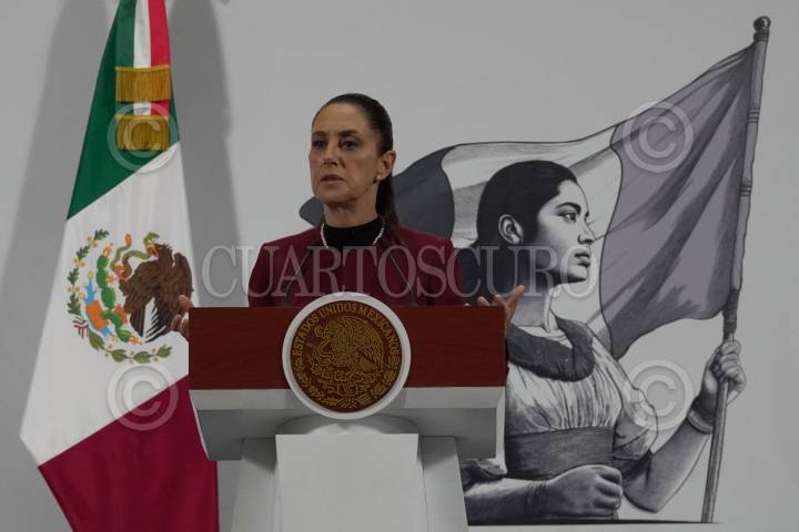 CIUDAD DE MÉXICO 25JUNIO2025.- Claudia Sheinbaum, presidenta de México, durante la Conferencia Mañanera del Pueblo en donde se abordó el tema de Telecomunicaciones, desde el Salón Tesorería en Palacio Nacional. FOTO:ROGELIO MORALES /CUARTOSCURO.COM