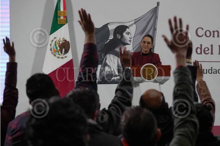 CIUDAD DE MÉXICO 25JUNIO2025.-Claudia Sheinbaum, durante la ronda de preguntas y respuestas en la Conferencia Mañanera del Pueblo. FOTO:ROGELIO MORALES /CUARTOSCURO.COM