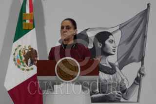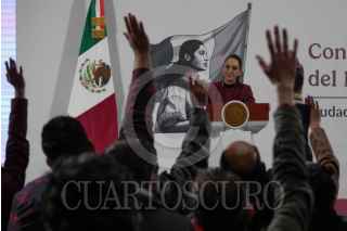 CIUDAD DE MÉXICO 25JUNIO2025.- Claudia Sheinbaum, presidenta de México y Jesús Ramírez, coordinador de asesores de la Presidencia de la República al término de la Conferencia del Pueblo. FOTO:ROGELIO MORALES /CUARTOSCURO.COM
