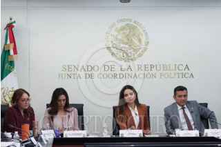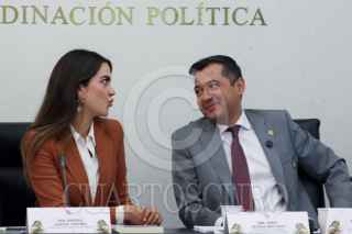 CIUDAD DE MÉXICO 25JUNIO2025.- Cecilia Guadiana, Andrea Chávez, senadoras por Morena y Luis Silva, senador por el PVE, durante la reunión de comisiones de Bienestar y de Estudios Legislativos en el Senado de la República. FOTO:ROGELIO MORALES /CUARTOSCURO.COM