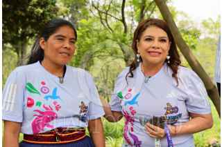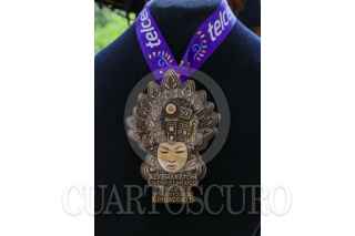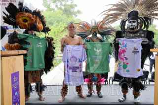 CIUDAD DE MÉXICO, 25JUNIO2025.- Lorena Ramírez Nahueachi, corredora de fondo y ultrafondo rarámuri; durante la presentación de la playera y medalla del Medio Maratón de la Ciudad de México BBVA 2025 y Maratón de la Ciudad de México Telcel 2025, que se llevarán a cabo los próximos 13 de julio y 31 de agosto, respectivamente, en las principales avenidas de la capital. FOTO: GOBIERNO DE LA CIUDAD DE MÉXICO/CUARTOSCURO.COM