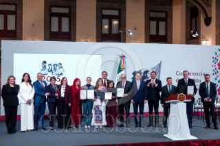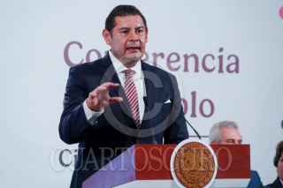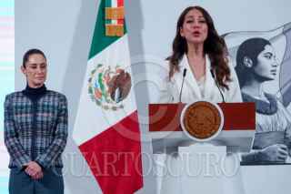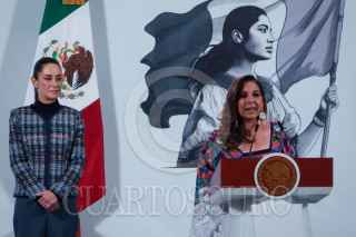 CIUDAD DE MÉXICO, 26JUNIO2025.- Delfina Gómez, gobernadora del Estado de México, durante su participación en la conferencia “Mañanera del Pueblo” en la que se firmó el acuerdo con 14 estados para el impulso a la iniciativa Pueblos del Desarrollo para el Bienestar. FOTO: GALO CAÑAS/CUARTOSCURO.COM