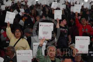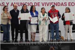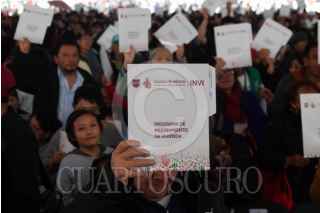 CIUDAD DE MÉXICO, 26JUNIO2025.- Asistentes levantan sus documentos al término del evento de entrega de Créditos de Mejora de Vivienda, Escrituras y el Anuncio de Viviendas Ecológicas, en las inmediaciones de Monumento a la Revolución. FOTO: GALO CAÑAS/CUARTOSCURO.COM