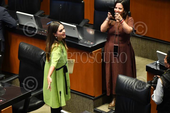 CIUDAD DE MÉXICO, 26JUNIO2025.- Andrea Chávez, senadora de Morena, durante la sesión extraordinaria del Senado de la República en la que se discute la Ley Reglamentaria del Servicio Ferroviario y la minuta por la que el Instituto Nacional de Estadística, Geografía e Informática (Inegi) asumirá las funciones del Consejo Nacional de Evaluación de la Política de Desarrollo Social (Coneval). FOTO: MARIO JASSO/CUARTOSCURO.COM