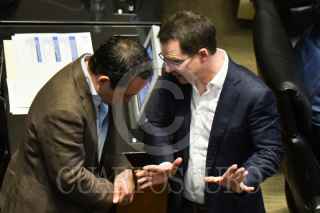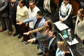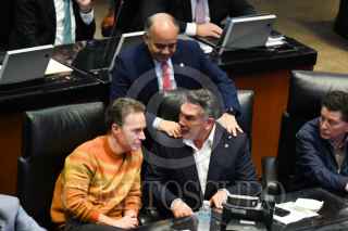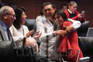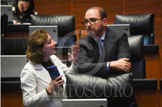 CIUDAD DE MÉXICO, 26JUNIO2025.- Manuel Velasco, senador del PVEM, junto a los senadores priístas Alejandro Moreno y Manuel Añorve, durante la sesión extraordinaria del Senado de la República en la que se discute la Ley Reglamentaria del Servicio Ferroviario y la minuta por la que el Instituto Nacional de Estadística, Geografía e Informática (Inegi) asumirá las funciones del Consejo Nacional de Evaluación de la Política de Desarrollo Social (Coneval). FOTO: MARIO JASSO/CUARTOSCURO.COM